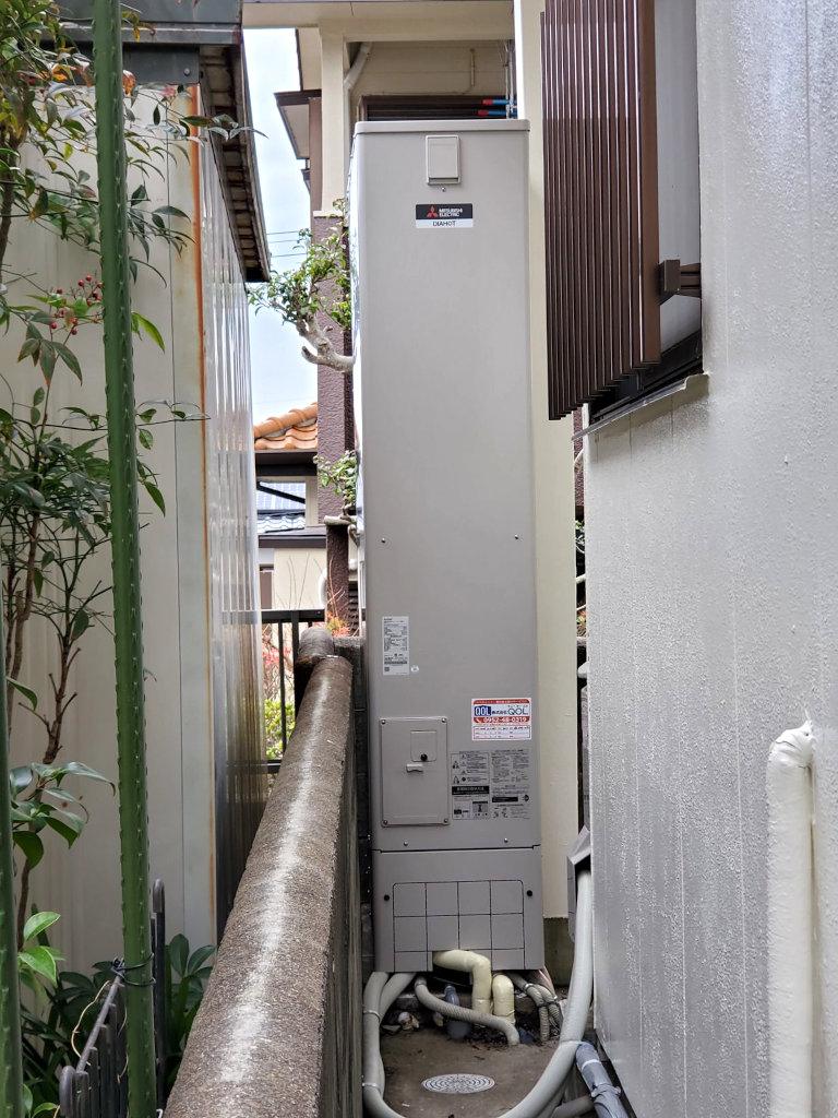三菱製の新しい薄型エコキュートに交換する工事を承りました。