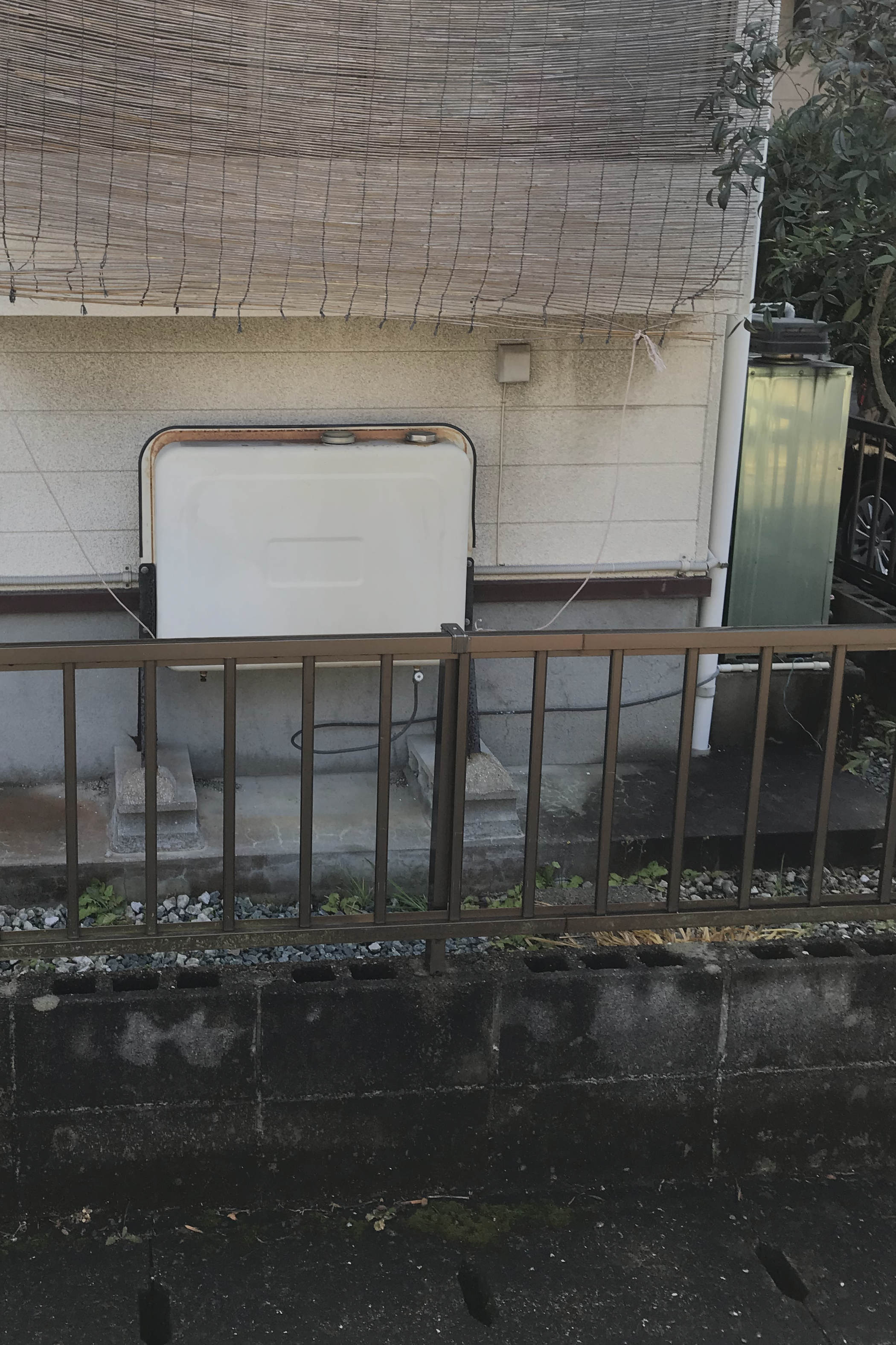 (右側写真の右奥に見えている物がエコキュートの貯湯ユニットです) |