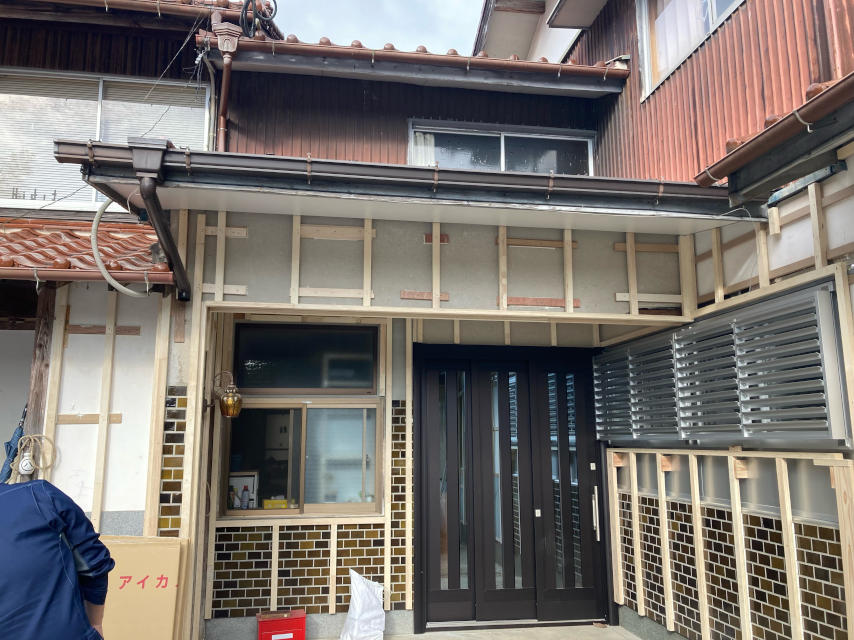 築50年のご自宅の玄関をもっと見映え良くしたいとの相談をいただき、工事を承りました。