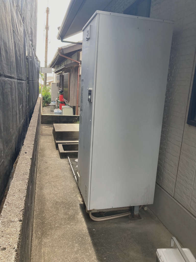 現地調査の結果、修理部品が製造終了している機種でしたので、買い換えるならエコキュートの方が月々の電気代を低減できる旨を説明しました。