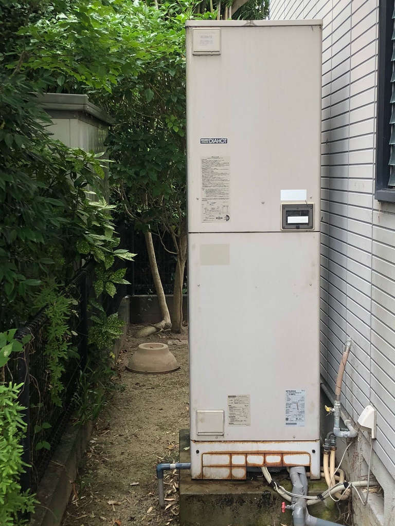 約17年間使い続けてきた三菱製フルオート電気温水器が、循環ポンプなどから水漏れを起こしていたとの事で、ご相談のお電話をいただきました。